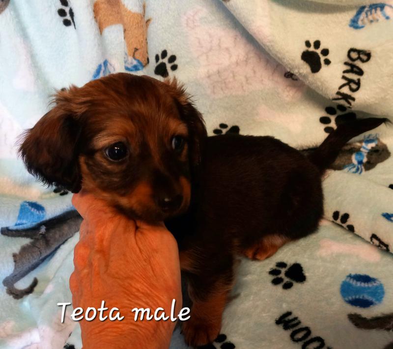 Here are the lovely pups that my teenage grandson and I raise. I have raised mini dachshund over 50 years, now he helps as he will be going to college soon (costly). I can show more pictures with my cell phone immediately. Please Call or text 580-436-7881 and I will show immediate pictures of the pups you are interested in. These pups are registered. Will have vaccinations up to date. Have a Health Guarantee. Give me a call, my cell phone can send pictures immediately. Donneta