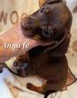 Just a sweety. My color is light red with chocolate dapple, I am small female mini dachshund.